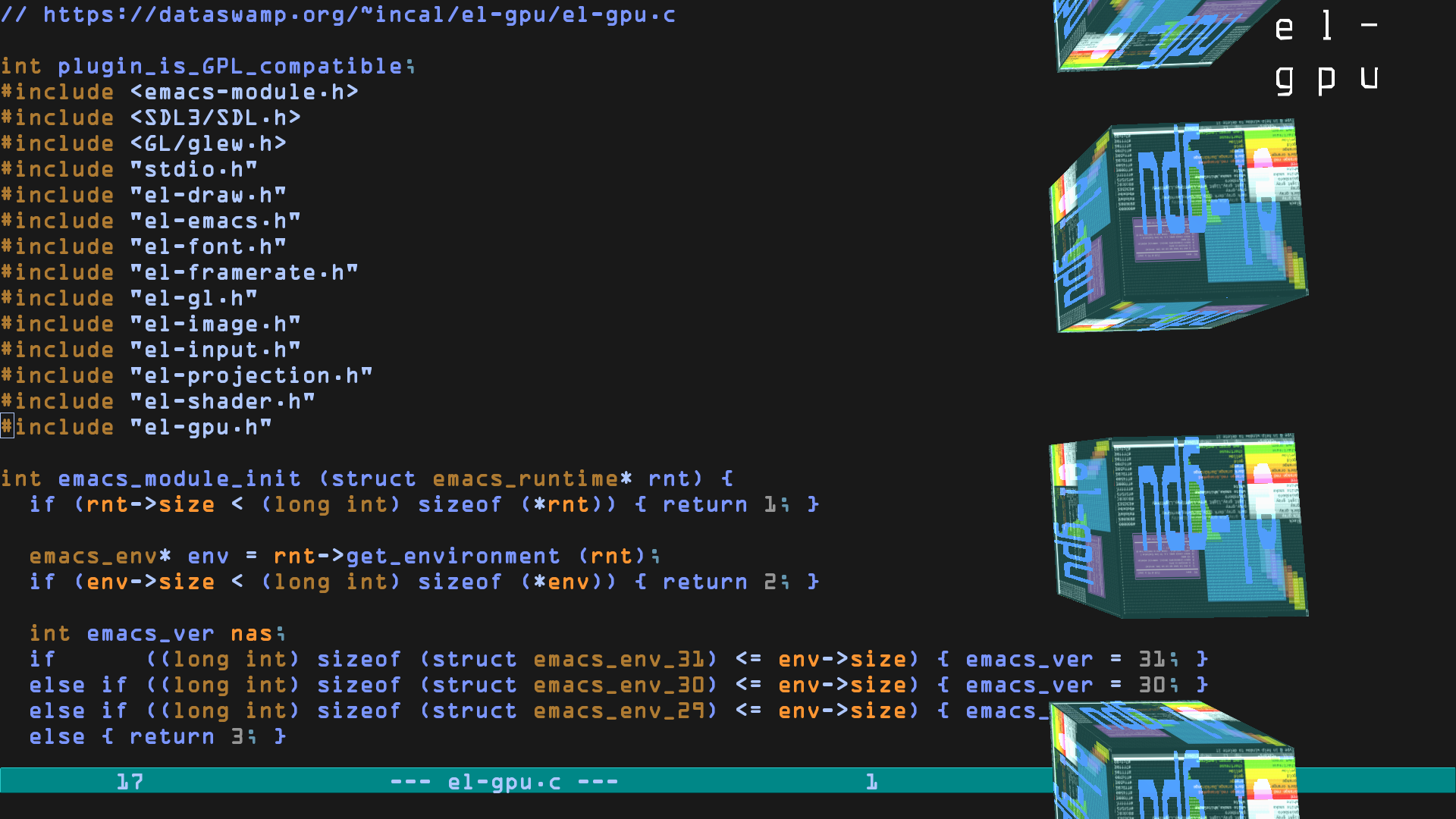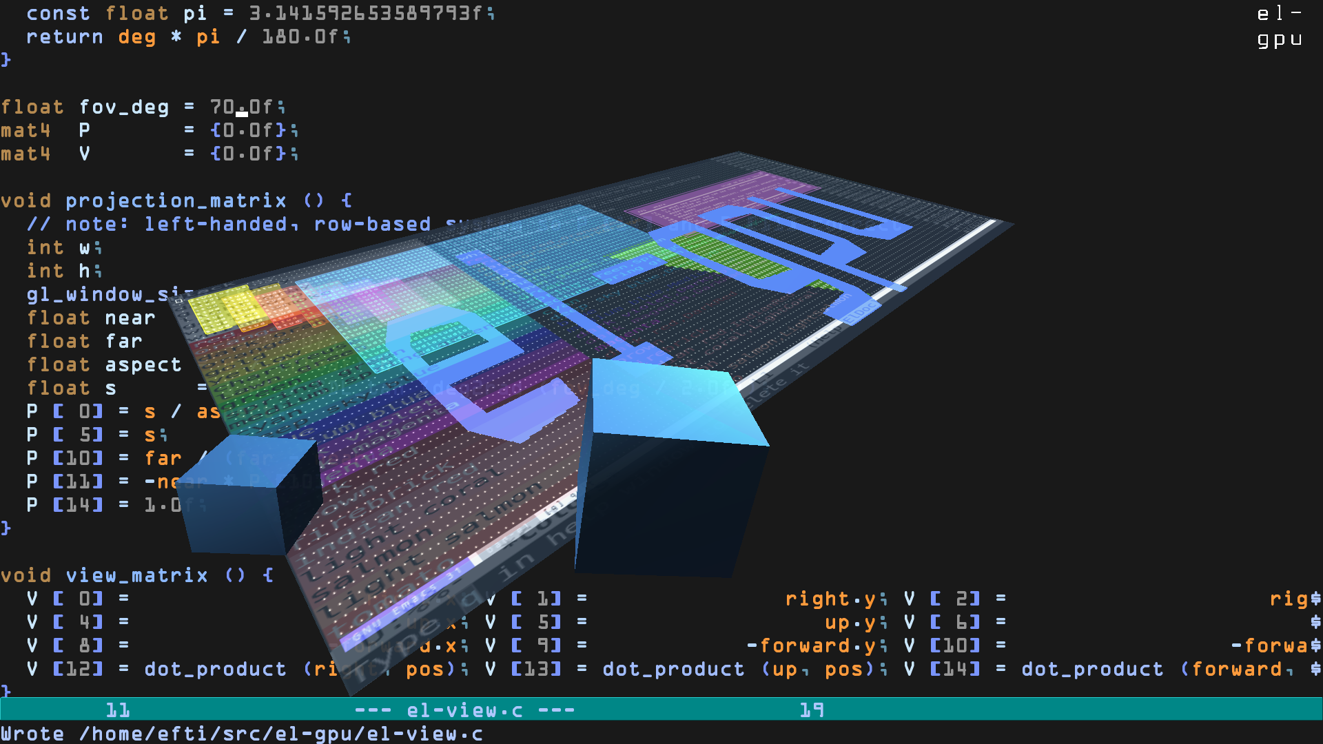 With el-gpu one can draw on the GPU from GNU Emacs and Emacs Lisp.